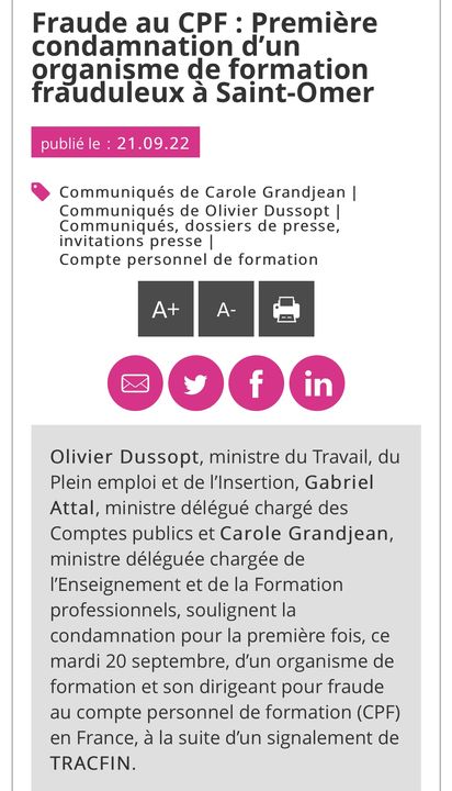 Depuis 2020, les escroqueries au CPF existent et la Caisse des Dépôts reçoit des plaintes à cet égard. Peu de communications efficaces ont été faites de la part du ministère du travail ou de la Caisse des Dépôts, et pour preuve :