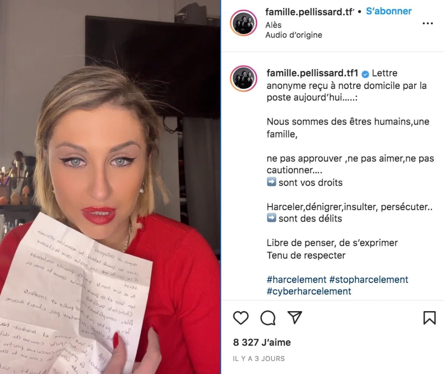 Mais ce n'était que le début. Victimes de doxxing (divulgation de données personnelles), leur adresse a été révélée et des lettres commencent à affluer dans leur boîte aux lettres, remplies de dénigrement et d'insultes envers chaque membre de la famille. « Les Pellissard, vous êtes une honte, une famille de beaufs. Comment osez-vous mettre en scène vos pauvres gosses ? Ils sont vilains avec une tête plate (...). Vos enfants n'ont aucune éducation. Bientôt, vos enfants auront la honte... ».